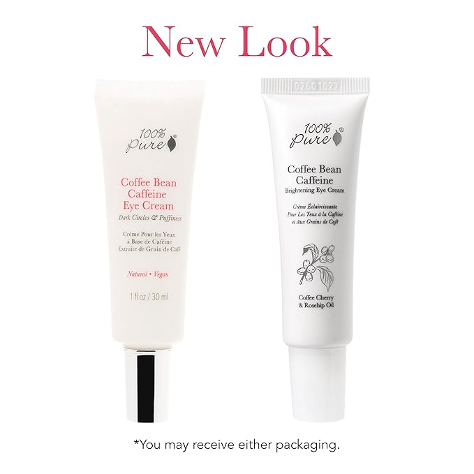 100% PURE Coffee Bean Caffeine Eye Cream Refresh & Hydrate Under Eye Treatment Reduce Puffiness, Dark Circles, Wrinkles with Green Tea, Rose Hip, Vitamin E - Youthful Vibrant Eyes - Vegan - 1 oz