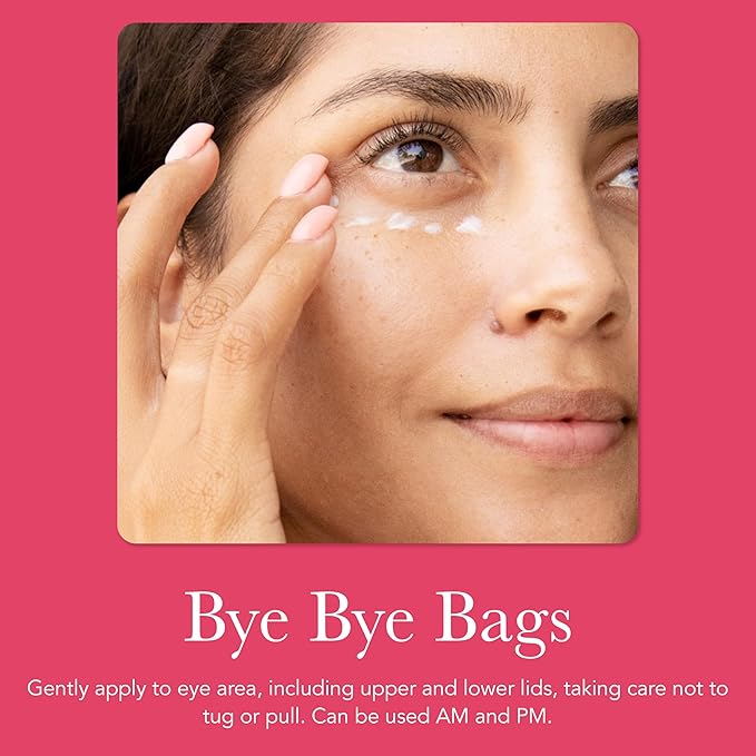 - BYE BYE BAGS - Don’t let your eyes give a long night away, show up awake, rested, and ready to go with stimulating, firming ingredients for revived de-puffed eyes when under eye bags are in need of a little repair.