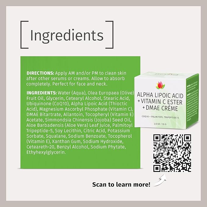 - YOUTHFUL GLOW - Alpha Lipoic Acid and Vitamin C Ester are potent antioxidants that improve the appearance of the skin, enhance skin radiance, and contribute to a healthier, more youthful appearance.
