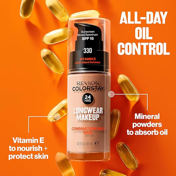 Revlon Liquid Foundation, ColorStay Face Makeup for Combination & Oily Skin, SPF 15, Medium-Full Coverage with Matte Finish, 370 Toast, 1 Fl Oz