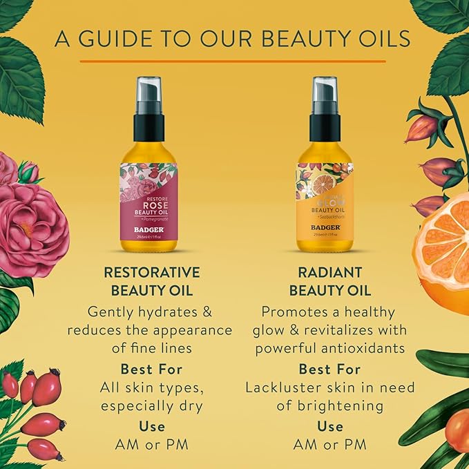 - SUSTAINABLE FACE MOISTURIZER FOR DRY SKIN: Badger face oil is organic, vegan, cruelty-free, in a glass bottle, and made with 100% solar power in the USA by a women-owned family business