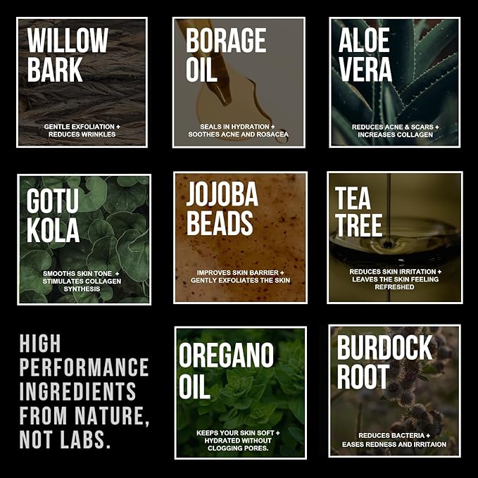 - ๐ด FOR DIVERSE SKIN TYPES: Normal, sensitive, oily, dry, combo and acne-prone complexions of all ages and ethnicities. This face scrub for men is crafted exclusively for him, targeting the challenges of rougher, thicker skin with more sebum (oil) production due to higher levels of testosterone.