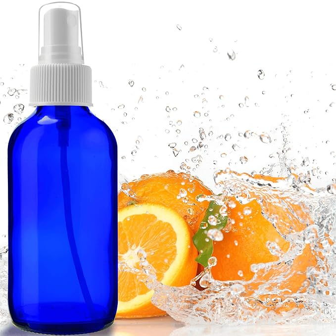 Sally's Organics Empty Blue Glass Small Portable Atomizer Spritzer, 2 Pack (4oz)
