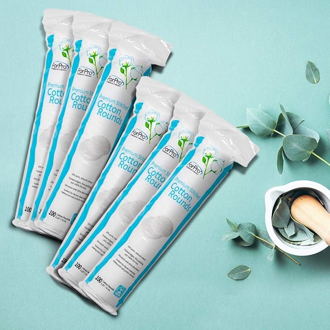 ForPro Premium Stitched Cotton Rounds, 100% Pure Cotton Pads for Removing Makeup, Nail Polish, and Cleansing Face, Pack of 6, Counts 600