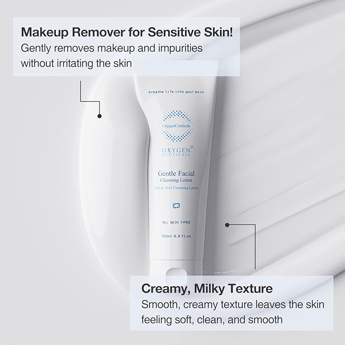 OxygenCeuticals Gentle Facial Cleansing Lotion – Hydrating Cleanser for Sensitive & Dry Skin, Removes Makeup Residue & Impurities Without Greasy Feel, Enriched with Botanic Oils 33.8 fl.oz (1000ml)