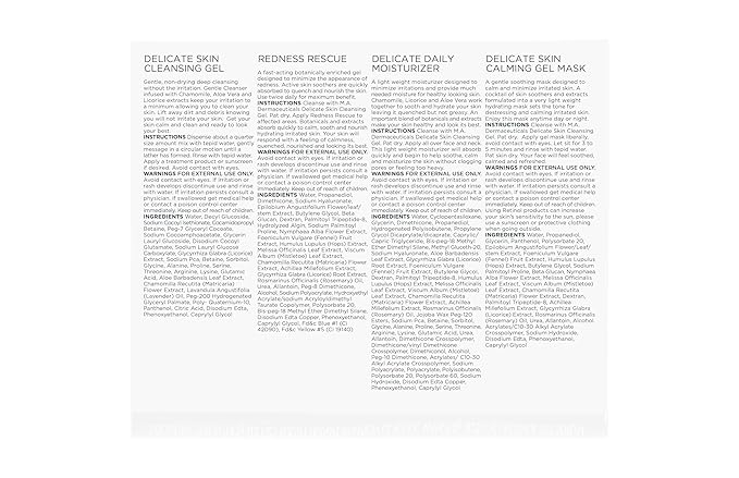 - Delicate Daily Moisturizer: A lightweight moisturizer designed to minimize irritations and provide essential moisture for healthy-looking skin. It combines botanicals like Chamomile, Licorice, and Aloe Vera to soothe and hydrate