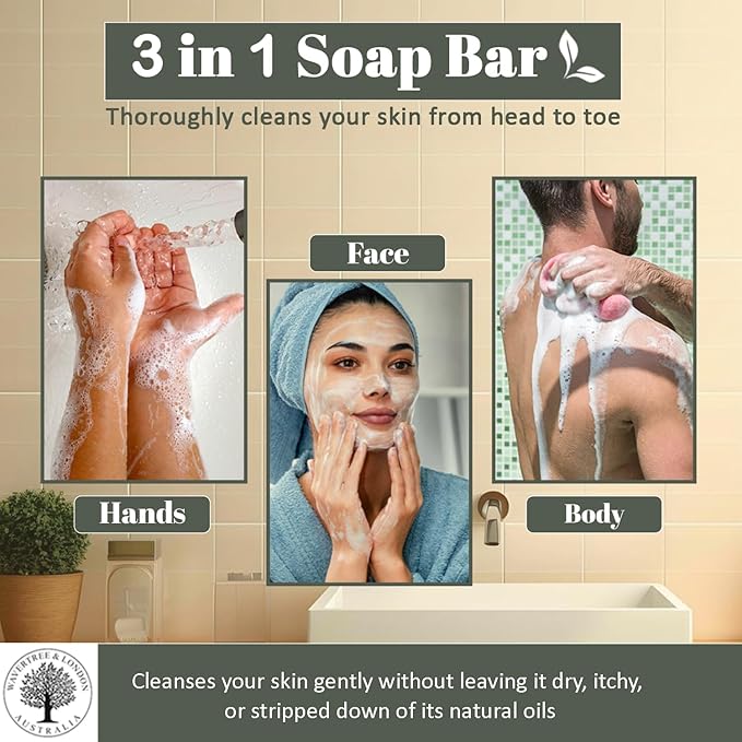 - ๐ฟ NATURAL INGREDIENTS | NON TOXIC BAR SOAP: Our hypoallergenic soap bars are made with the finest natural native Australian and globally sourced ingredients and sustainable plant oils. Unlike commercially produced soaps, these natural soap bars contain NO harsh chemicals or parabens and no sodium laurel sulphates, HEDP or EDTA.