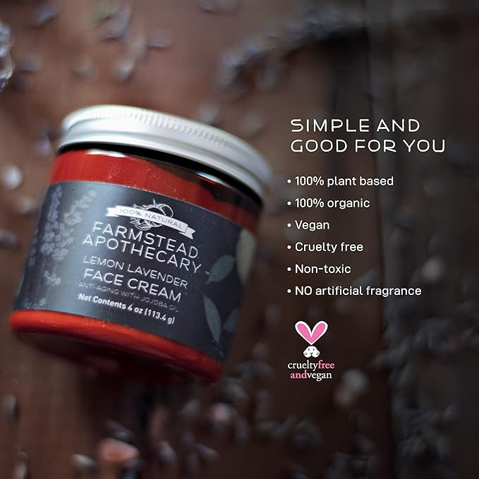 Farmstead Apothecary 100% Natural Anti-Aging Face Cream with Jojoba Oil, 4 oz (Lemon Lavender)