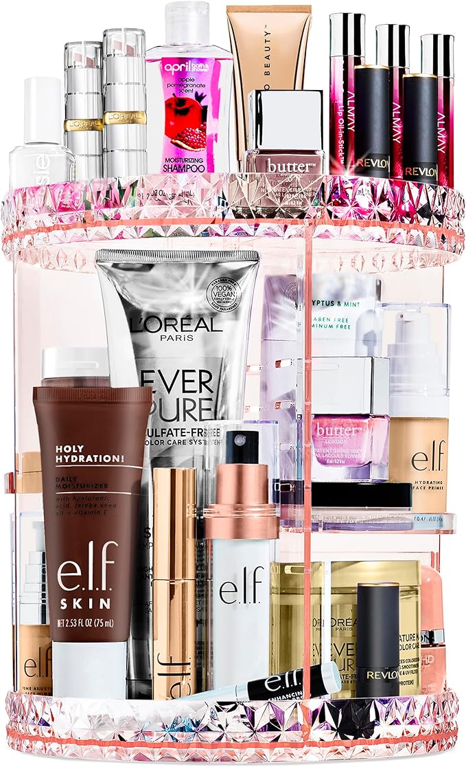 - SPINNING MAKEUP ORGANIZER CAROUSEL - Organize your favorite beauty products in this rotating makeup and perfume organizer - This elegant makeup organizer features beautiful diamond trim - The Sorbus Makeup Storage Rack makes a great gift for any teen girl or adult - Perfect for beauty, fashion, and make up lovers - Measures approx. 10" L x 11.5" H