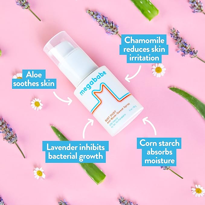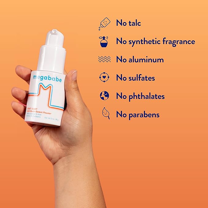 Megababe Sweat Absorbing Body Powder - Bust Dust, with Applicator Pump, Talc-Free, All Natural, 3 oz