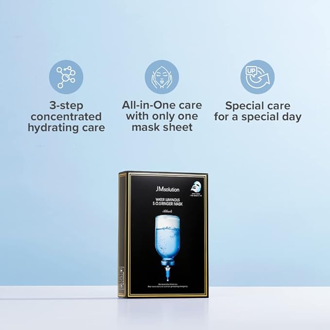 JMsolution Water Luminous S.O.S Ringer Mask Black - Korean Skin care-Rich Hydrated Smooth Moisture -10 sheets for All Skin type
