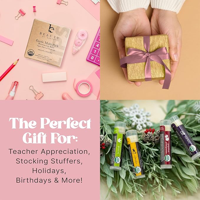 - PERFECT GIFT FOR ANY OCCASION: This organic lip balm set makes ๐ข๐๐๐๐ฅ ๐ฌ๐ญ๐จ๐๐ค๐ข๐ง๐ ๐ฌ๐ญ๐ฎ๐๐๐๐ซ๐ฌ for wife, small stocking stuffers for women, or stocking stuffers for teen girls. Beautifully packaged and suitable for all, itโs a thoughtful and practical cute stocking stuffer for women and all natural gifts for women.