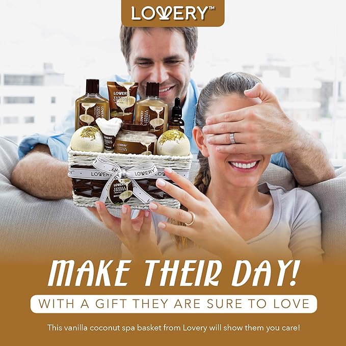 Gifts For Women Gift Basket for Womenβ 9 Piece Set of Vanilla Coconut Home Spa Set, Includes Fragrant Lotions, Extra Large Bath Bombs, Coconut Oil, Luxurious Bath Towel & More