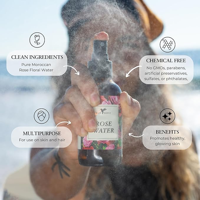 Rose Water Spray for Face by Baja Basics - Pure, Organic Facial Toner for Hair and Aromatherapy Large 4 oz