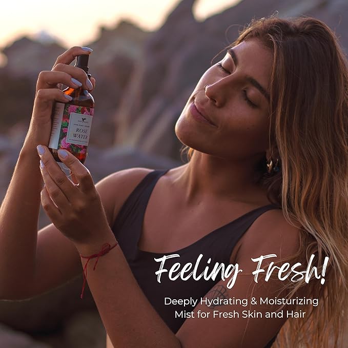 - Single-ingredient skincare – Made with Moroccan rose floral water, this gentle mist delivers the natural aroma of fresh roses while hydrating and toning the skin. For an extra cooling boost, store organic rose water in the fridge!