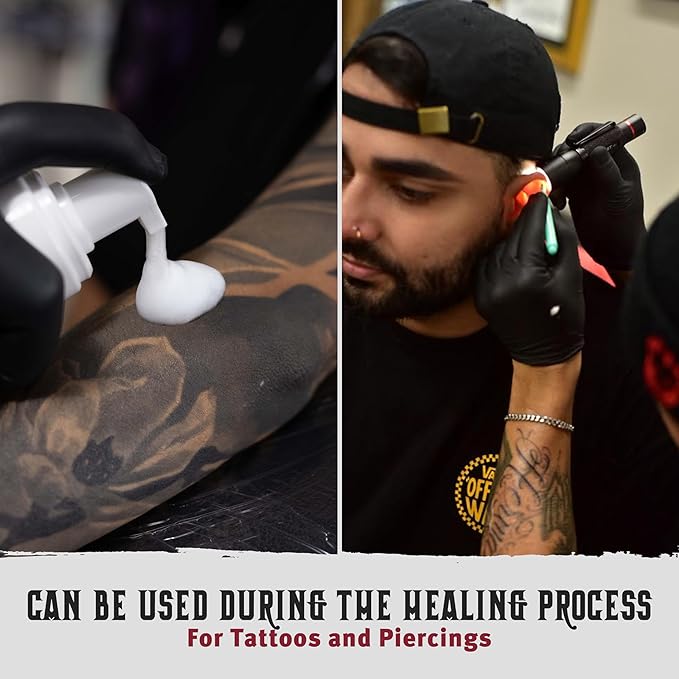 - Foaming Tattoo Soap: Great for in-process and post-tattoo and piercing care. Keeps new tattoos & piercings clean during the healing process, helping to minimize irritation and prevent infection.