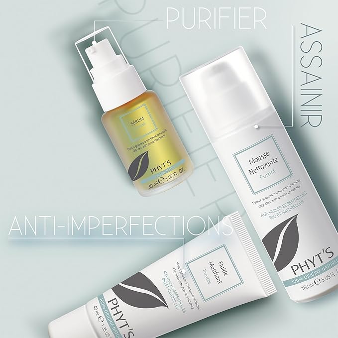 Phyts Purity Mattifying Fluid - Face Moisturizer for Oily Skin - Face Cream with Absorbent Silicas and Essential Oils - Refines Skin Texture - 1.35 oz