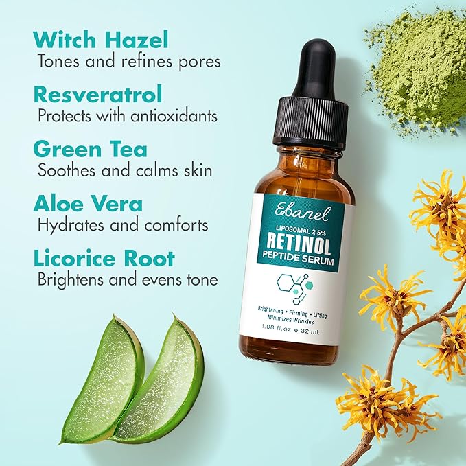 Ebanel Retinol Serum for Face with Vitamin C, Peptides & Hyaluronic Acid, Anti Aging Face Serum for Fine Lines, Uneven Skin Tone, Dark Spots & Texture, Pore Minimizer with Resveratrol & Niacinamide
