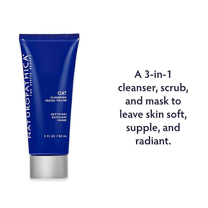 Naturopathica Oat Cleansing Facial Polish, Multi-Use Facial Cleanser, Face Scrub and Mask, Exfoliating Face Wash for Men & Women, Travel Size, 2 fl oz