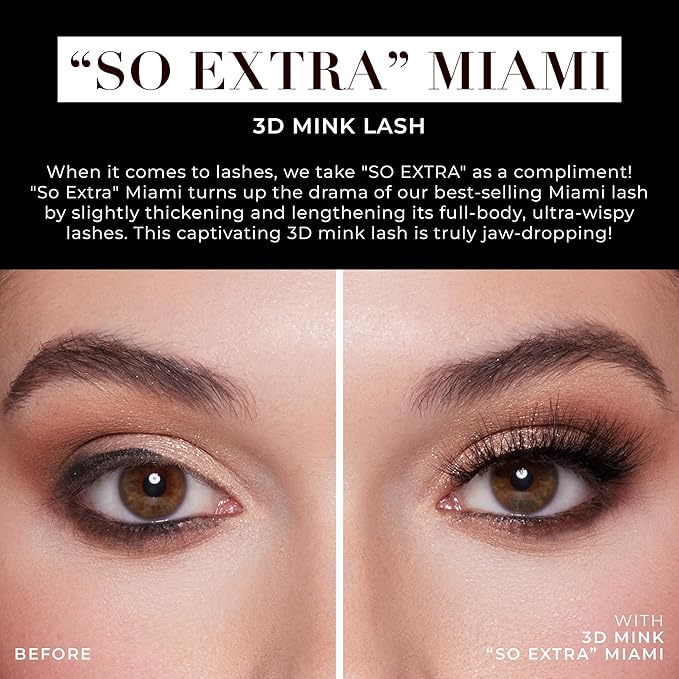 Lilly Lashes So Extra Miami 3D Mink Lashes, Mink Eyelashes, The Original Lilly Lash For Wispy & Natural Look, Reusable Eyelashes up to 25x, Fluffy Lashes, Strip Lashes, Lash Glue not Included