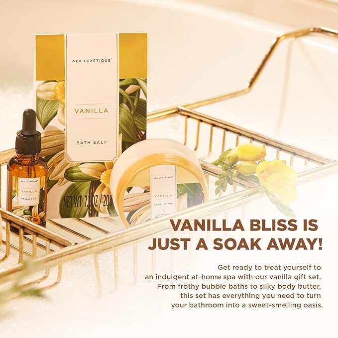 Spa Luxetique Gift Baskets for Women,15 Pcs Vanilla Spa Gifts for Women, Women's Gifts with Bubble Bath, Bath Salt, Bath Bombs, Christmas Spa Baskets