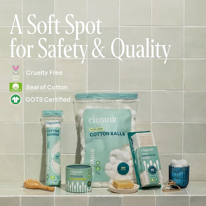 Cliganic Organic Cotton Rounds (500 Count) Makeup Remover Pads, Hypoallergenic, Lint-Free | 100% Pure Cotton (Packaging May Vary)