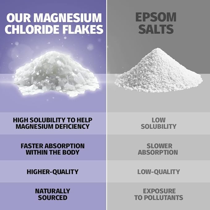 - Magnesium Flake Infusion: Elevate your bath routine with Transdermal Magnesium Chloride flakes. Designed for foot or full-body soaks, our bath salt blend delivers a refreshing experience that's perfect after a long day or intense activity