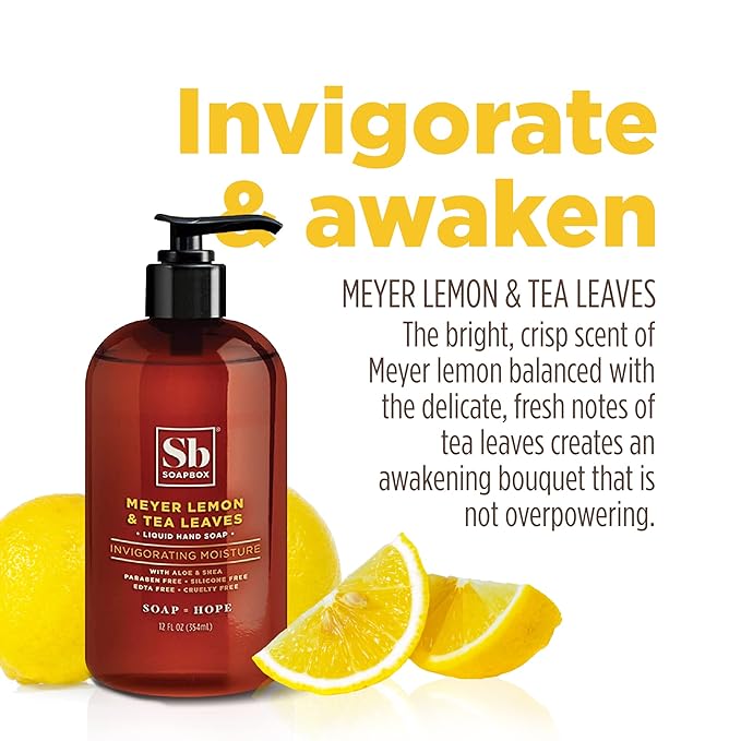 Soapbox Liquid Hand Soap, Meyer Lemon & Tea Leaves - Gentle, Moisturizing Hand Cleanser, Vegan, Cruelty Free Hand Soap for Bathroom and Kitchen, 12oz Pump Bottles (Pack of 3)