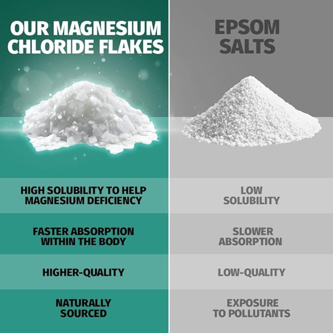 - Magnesium Flake Infusion: Elevate your bath routine with Transdermal Magnesium Chloride flakes. Designed for foot or full-body soaks, our bath salt blend delivers a refreshing experience that's perfect after a long day or intense activity