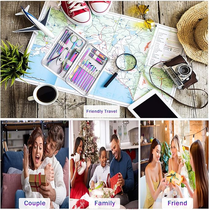 - 【Unique Design】: Our rainbow manicure kits, its highlight is rainbow tools with a rainbow PU leather texture case, feel comfortable, fashion and practical. You will be amazing about it. Beautiful leather covers will never go out of style, have a comfortable feel and are easy to trim. It will be an excellent quality gift for christmas, birthday, anniversary and marriage.