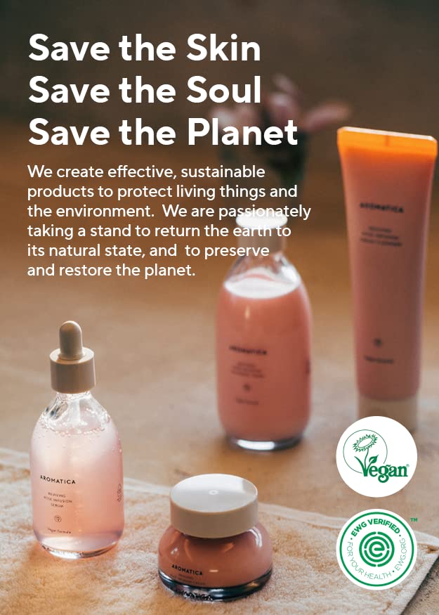 AROMATICA Reviving Rose Infusion Serum, Vegan, Vitality, Rejuvenating Hydration Serum for Dry Skin | with Damask Rose Water and Oil (3.38oz / 100ml)