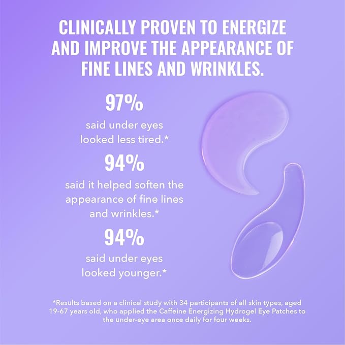 - NURTURING, POWERFUL INGREDIENTS: These hydrogel eye patches contain caffeine, hyaluronic acid, niacinamide, licorice extract, peptides, and aloe vera to brighten dark circles, plump the appearance of fine lines and wrinkles, and deliver lasting hydration to the skin.