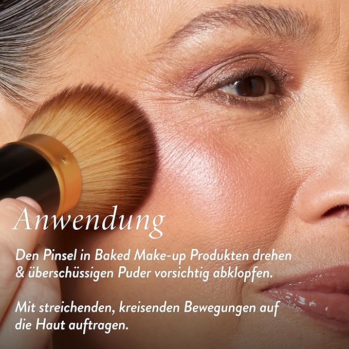 - EVEN, STREAK FREE & PATCH FREE APPLICATION: Swirl or dip the retractable Kabuki brush into powder and gently tap off any excess. Apply to skin using sweeping, circular motions. Slide the base down slightly to apply creams or push it down all the way for powders.