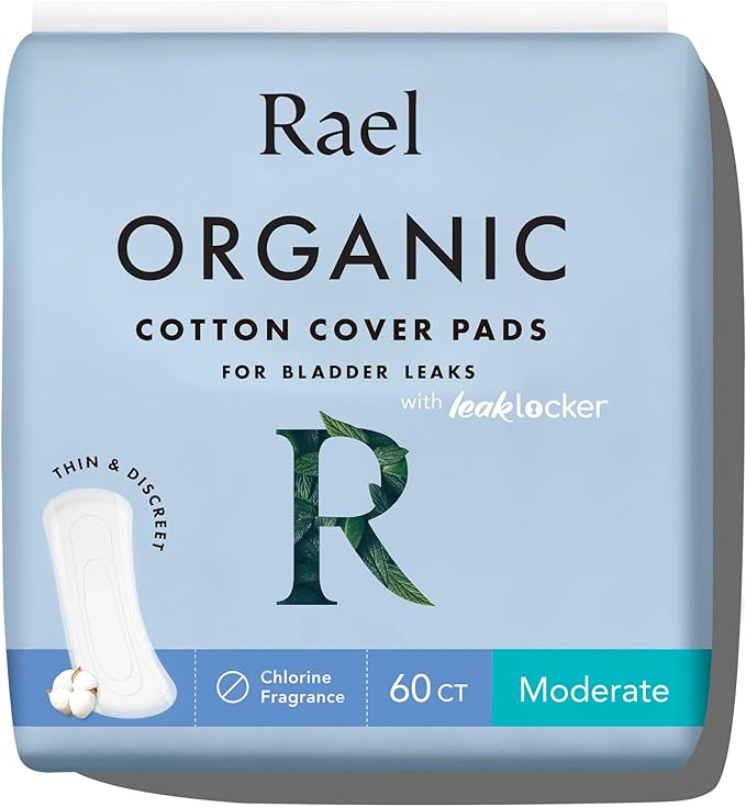 Rael Incontinence Pads for Women, Organic Cotton Cover, Postpartum Essential, Heavy Absorbency, Bladder Control, 4-Layer Core with Leak Guard Technology, Long Length (Moderate, 60 Count)