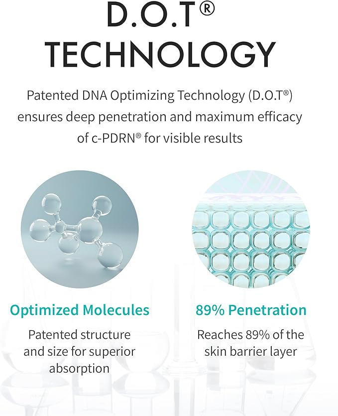 - ADVANCED C-PDRN TECHNOLOGY: Our patented c-PDRN works synergistically with salmon DNA to boost collagen production and support skin regeneration. This enhances firmness, reduces fine lines, and promotes a healthy, luminous glow.