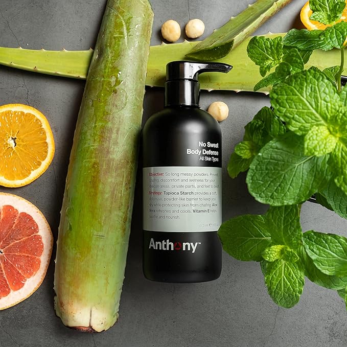 Anthony No Sweat Body Defense, Anti-Chafe Talc Free Cream To Powder Lotion, 16 Fl Oz and Anthony Invigorating Rush Hair and Body Wash, 32 Fl Oz