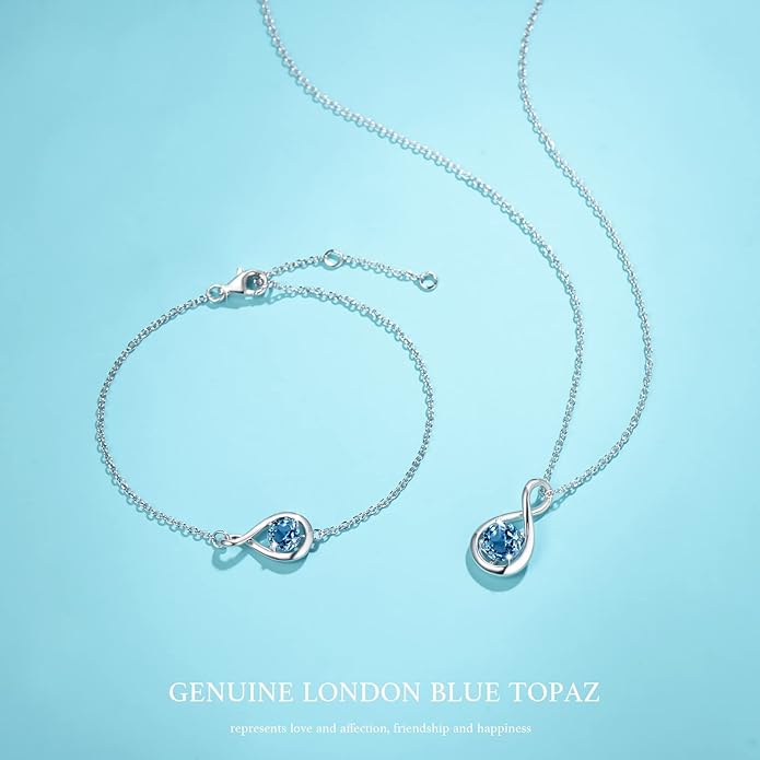 - ❤Topaz Jewelry❤This infinity birthstone necklace is designed with infinity symbols and inlaid with a blue round-shape stunning and shining London Blue Topaz birthstone. Topaz is the November and December Birthstone, Represents friendship and happiness.