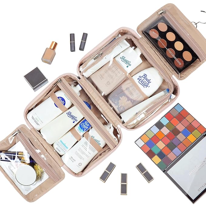 - STURDY HOOK DESIGN - Special U-shape zippers design, take out the toiletries or zip up the toiletry case quickly. No more unpacking, digging through one bag, and laying your stuff on the bathroom counter. Just hang the bag up, grab what you need, and put it back in it