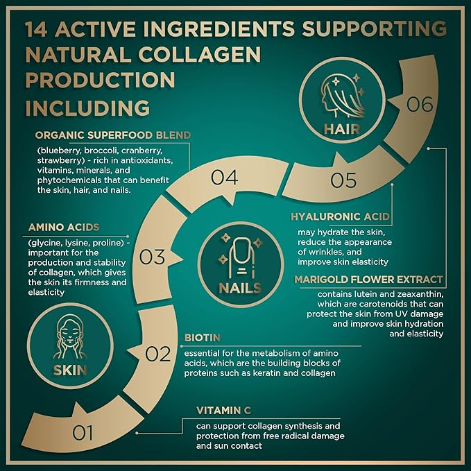 - BEYOND A MULTIVITAMIN. A concentrated blend of age-defying minerals, and high-performance naturals known to boost collagen levels. Fortified with vitamin C, glycine, proline, and lysine amino acids, which are vital for collagen synthesis, joint health, and a youthful glow.
