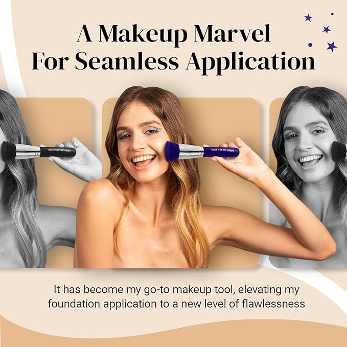 - Build your desired coverage in no time because the large kabuki brush has a 1.6-inch top diameter which makes blending and buffing easier and faster than other kabuki makeup brushes.