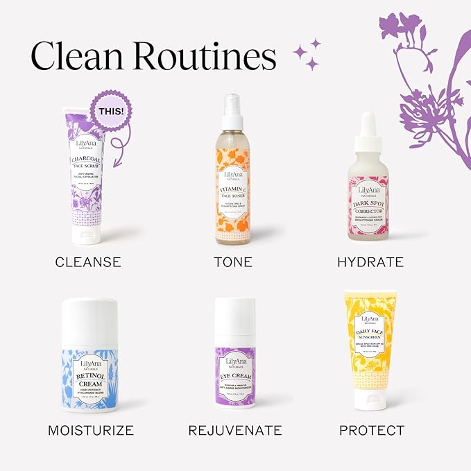 LilyAna Naturals Charcoal Face Scrub - Facial Exfoliator - Microdermabrasion Scrub - Facial Skin Care Products for Women and Men - Lavender and Tea Tree Oil - 3oz