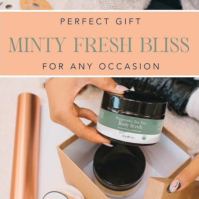 Peppermint Tea Tree Organic Body Scrub - USA Made Sugar Scrub with Natural Ingredients, Moisturizing Body & Foot Exfoliator for Dry and Sensitive Skin, Removes Dead Skin Cells & Reduces Ingrown Hair