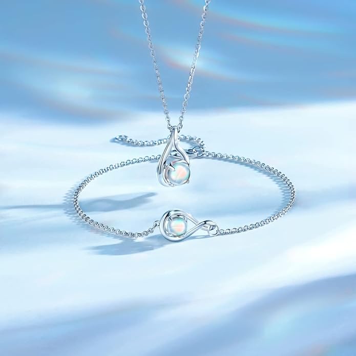 - ❤Moonstone Jewelry❤This infinity birthstone necklace is designed with infinity symbols and inlaid with a created Moonstone. Moonstone is the June Birthstone, Represents wealth, happiness, happiness and nobility.