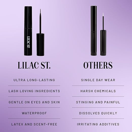 - Lilac Lash Glue - The perfect bond for beginners with a strong yet forgiving formula with plenty of playtime for wisp placement. The brush tip applicator makes precise application a breeze. Dries black for an eyeliner-like look. 0.16 fl oz