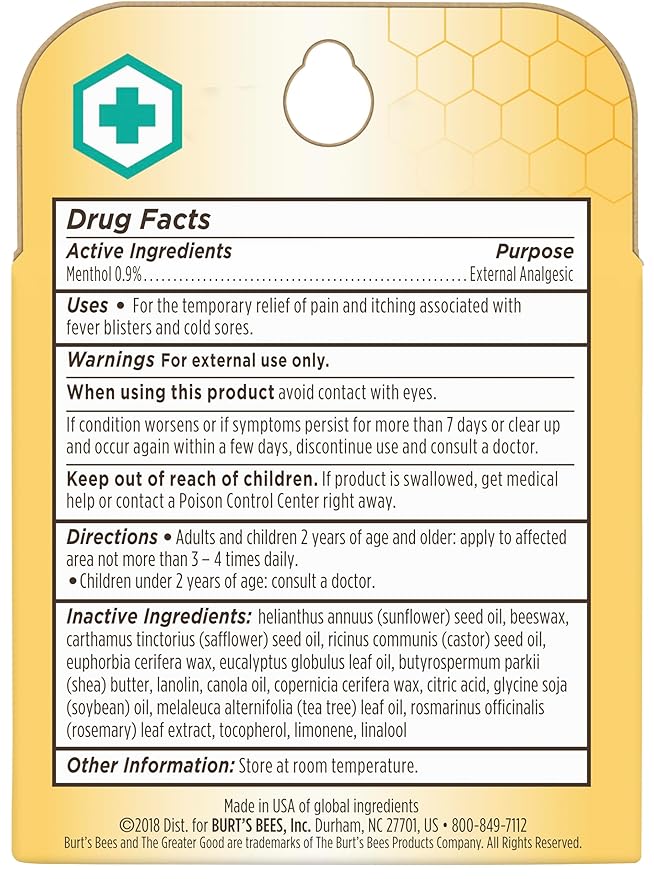 - COLD SORE LIP TREATMENT: Infused with eucalyptus oil and soothing menthol, this lip therapy temporarily offers pain relief and itching relief related to a cold sore or fever blister