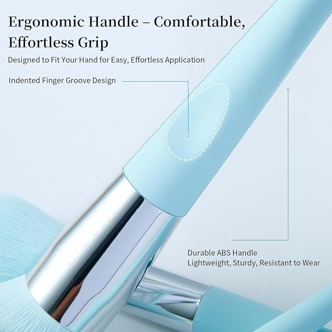 - 【Ergonomic Handle】 The brush handles feature an ergonomic groove that fits your fingertips perfectly, offering a comfortable, non-slip grip. Apply makeup with ease and enjoy a smoother beauty routine every day