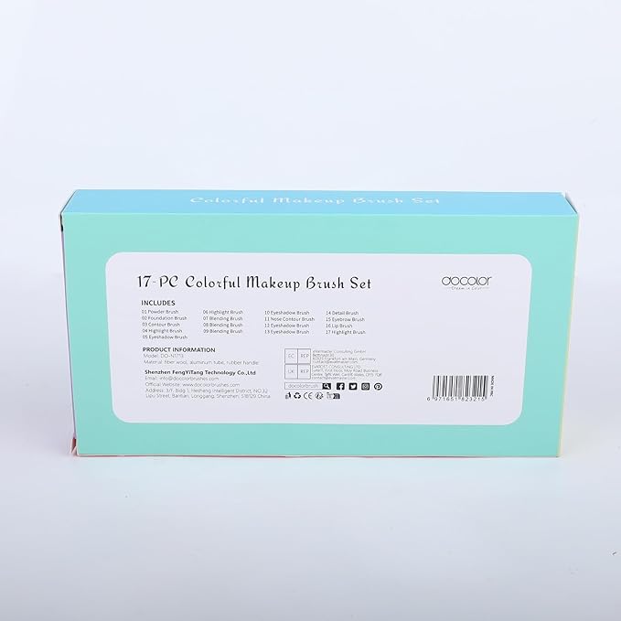 Docolor Makeup Brushes 17 Pcs Colourful Makeup Brush Set Premium Synthetic Kabuki Foundation Blending Face Powder Blush Concealers Eyeshadow Rainbow Makeup Brush Travel Friendly Valentine's Day Gift