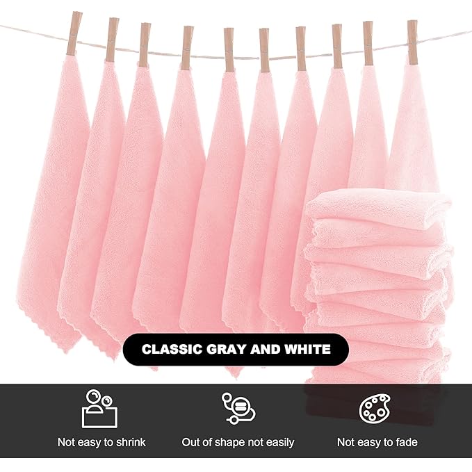 MOONQUEEN Microfiber Facial Cloths Fast Drying Washcloth 12 Pack - Premium Soft Makeup Remover Cloths - Pink