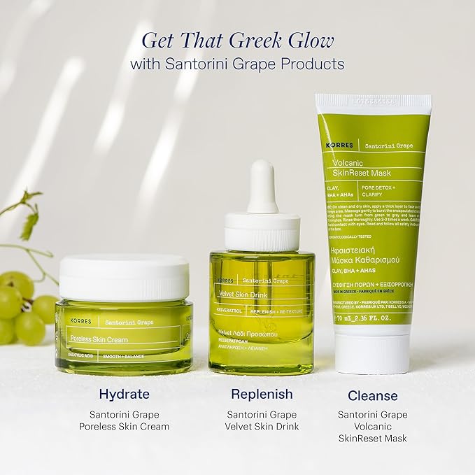- KORRES: Korres is a clean ingredient-first Greek skincare brand. Our mission is to create beauty formulations in harmony with the planet and your skin—delivering healthy, transformative results without the harsh chemicals. Our Santorini Grape Velvet Skin Drink is dermatologically tested, vegan friendly, non comedogenic, silicone free, cruelty free, and housed in recyclable packaging.