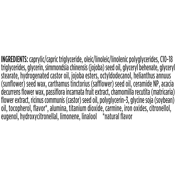 - INFUSED AND ENRICHED: Passion fruit and chamomile flavor is a luscious treat for the senses, while passion fruit extract, vitamin E and ceramides help maintain your lip’s natural moisture barrier